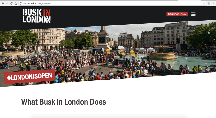 英國倫敦政府 (Mayor of London) 設立 Busk in London 部門,專職處理倫敦市街頭藝人事務,其背後顧問群為 街頭藝人、警察、地鐵公司、商圈發展組織。