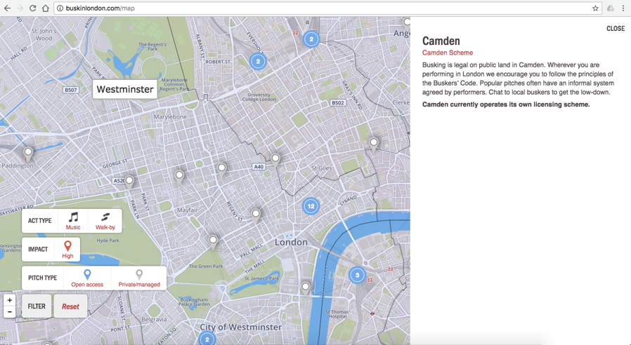 詳細說明倫敦街頭表演規則與各場地介紹,讓當地表演者、當地居民、國外表演者、外來觀光客明確知道 街頭藝人展演地點 – 時間 – 可演出項目以及哪些展演點需要通過考試才能演出 – 哪些是自由登記。