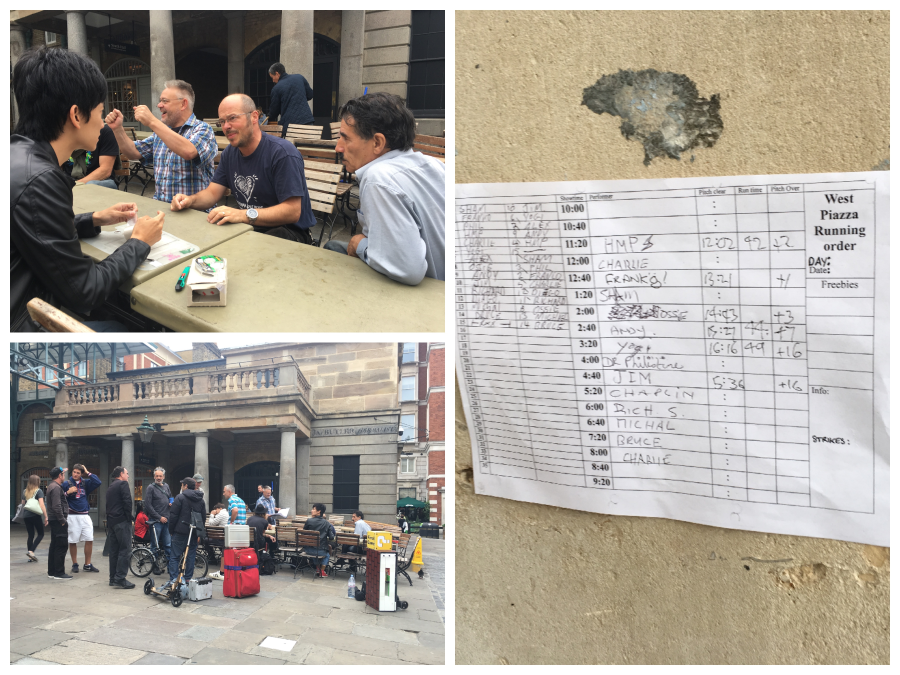 與台北相同,倫敦的熱門街頭展演點經常出現表演者飽和的狀態。但由於所有人都遵守彼此之默契,讓本地/外來/前輩/後進表演者為了生存,不至於發展成惡性競爭。